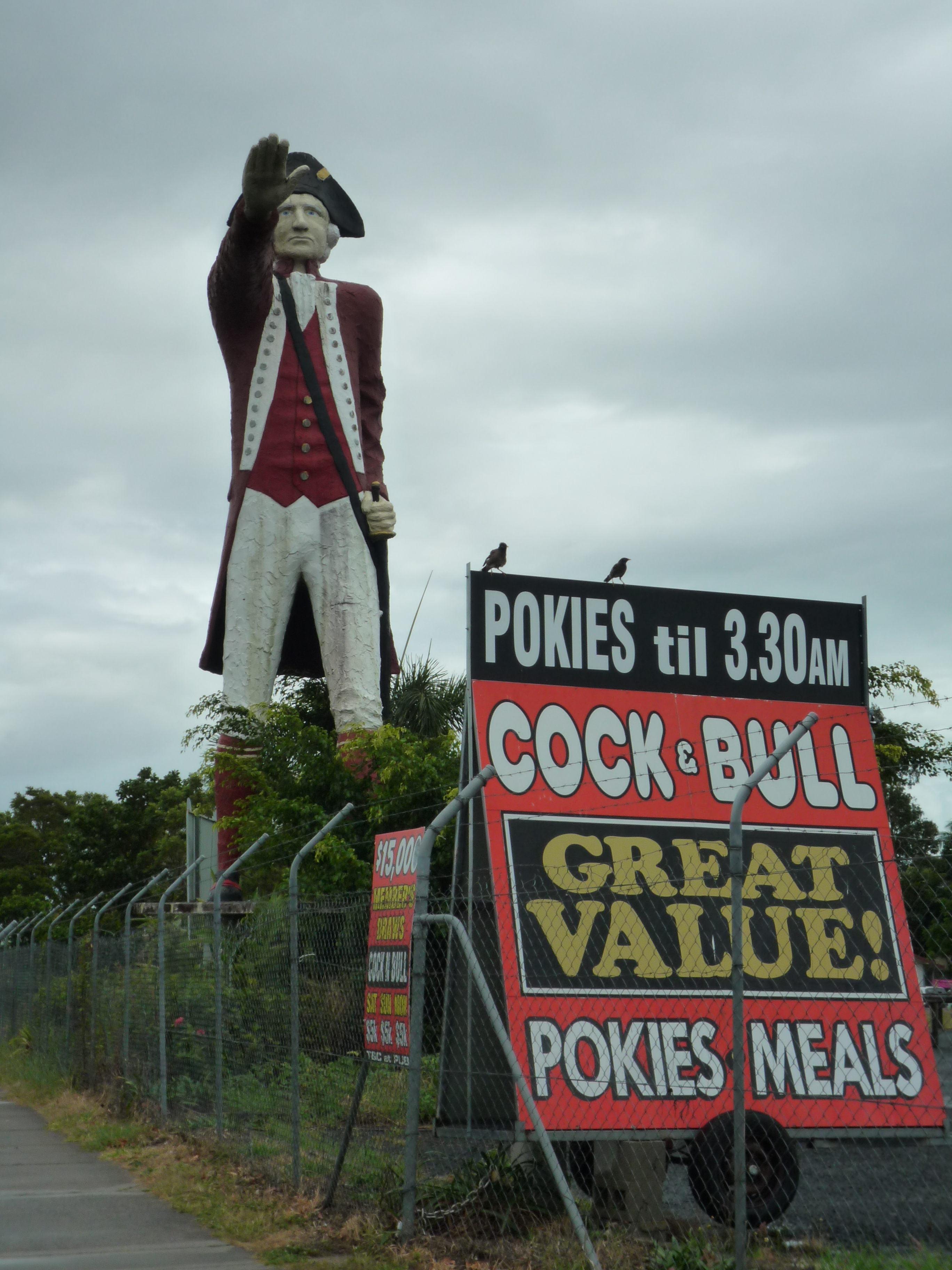 Sur la côte est de l’Australie la grande route qui « remonte » vers le nord (c’est à dire vers la chaleur et le soleil, comme le fait notre autoroute du sud en « descendant » vers le Midi ) s’appelle « Pacific Highway » jusqu’à Brisbane, « Bruce Highway » de Brisbane à Cairns et « Captain Cook Highway » de Cairns à Port Douglas d’où l’on s’embarque pour aller nager avec les mérous dans la Grande Barrière de Corail.