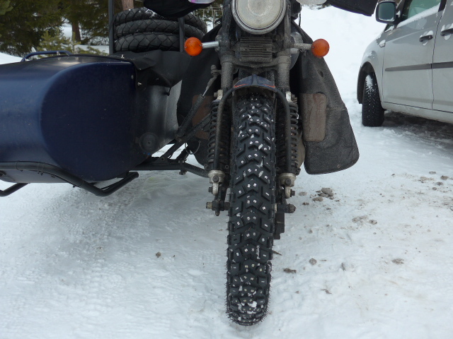 Demain je repars pour le Nord, non sans avoir, grâce aux judicieux conseils d’Eric Boudinet (Erik le Viking serait plus exact), clouté les pneus de l’Orange Bleue :